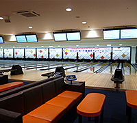 充実したカラオケとともに、華やかな場内のボウリング場です。